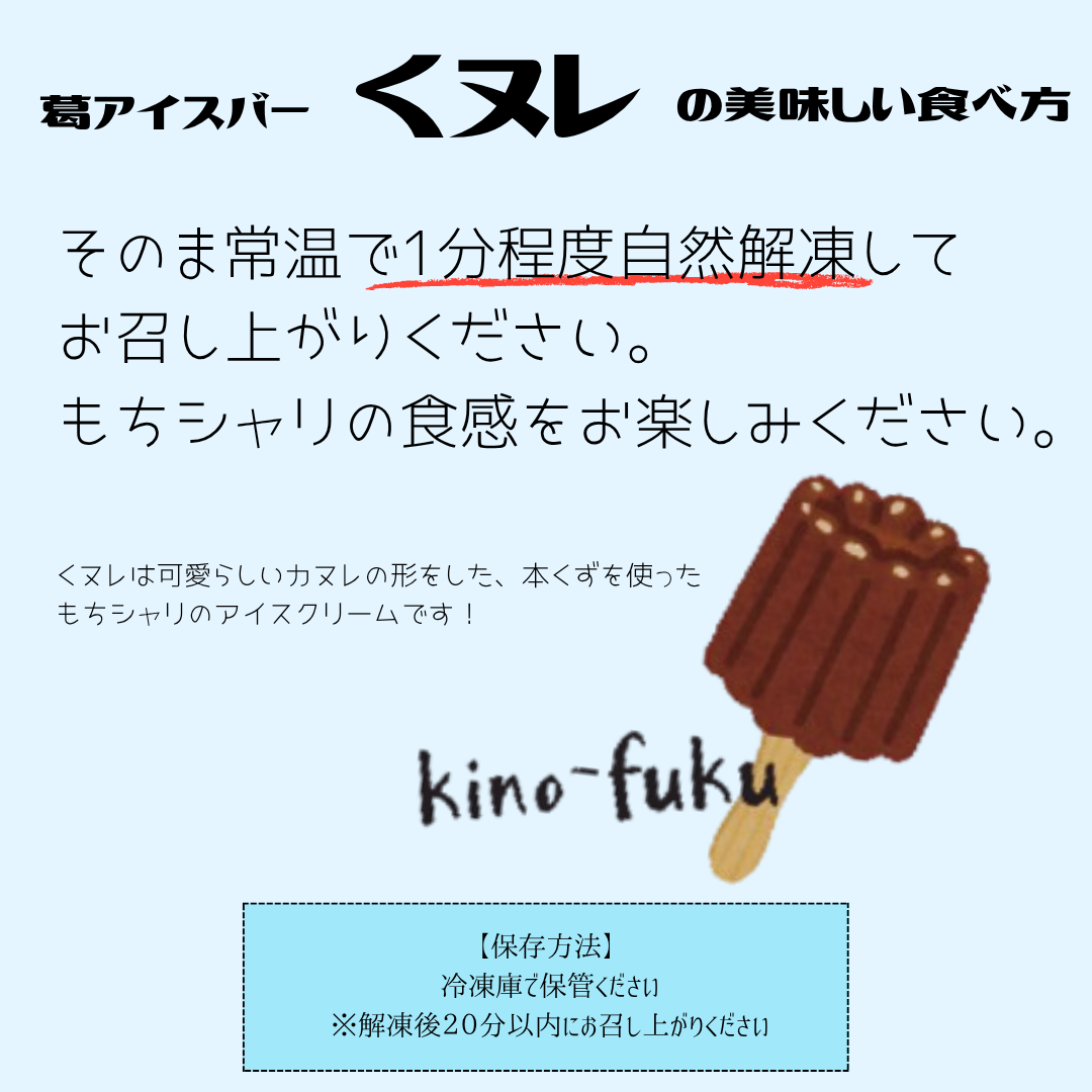 くヌレとはかわいいカヌレの形の溶けない葛アイスバーです。ダイス状にしたたっぷりの甘酸っぱい生いちごと、牛乳と練乳の甘くてミルキーな風味のコラボレーションをご堪能下さい。 葛のもっちりとした食感も合わせてお楽しみいただけます。