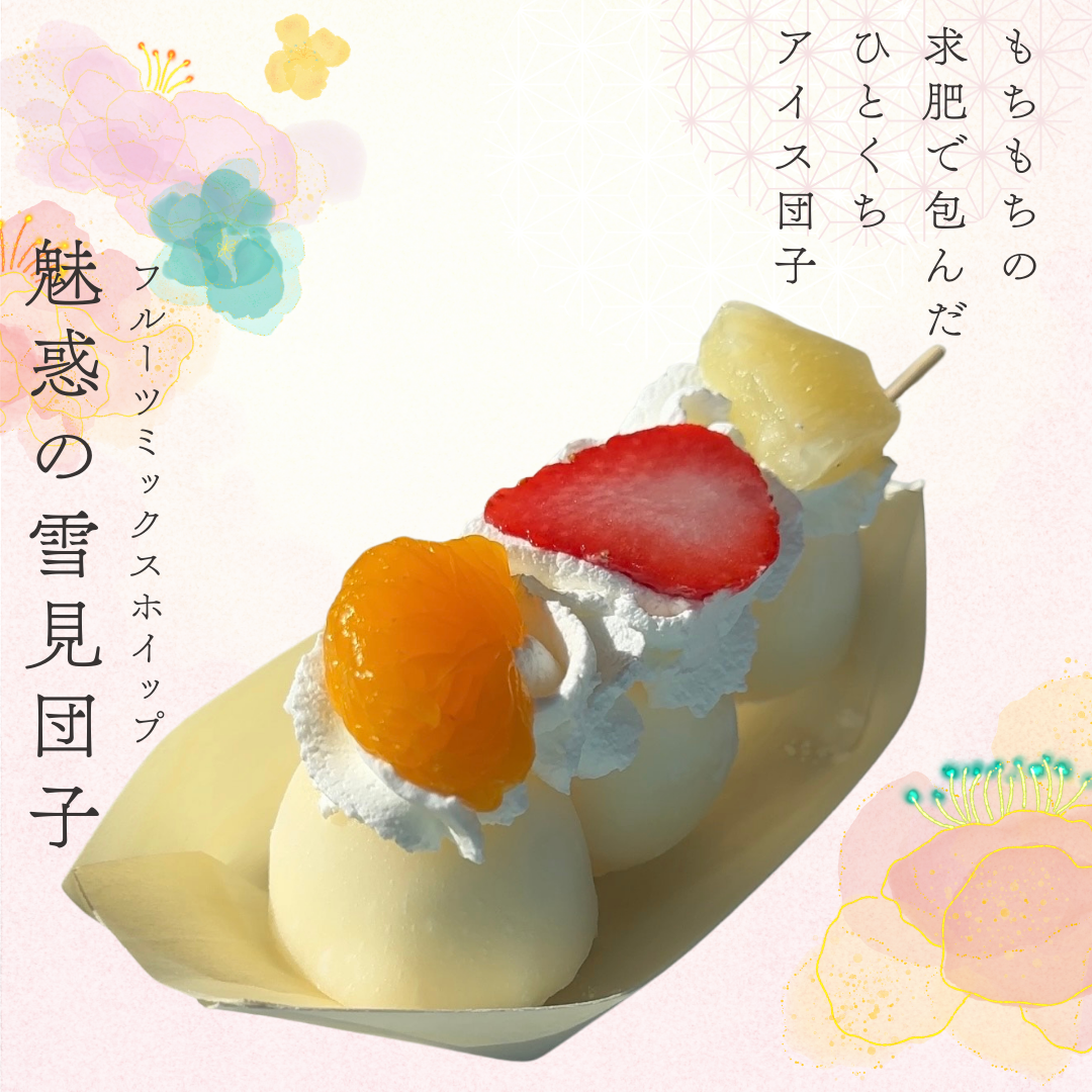 フルーツミックスホイップで可愛くデコレーションし、串刺しスタイルで手を汚さずに楽しめる“体験型スイーツ”です。