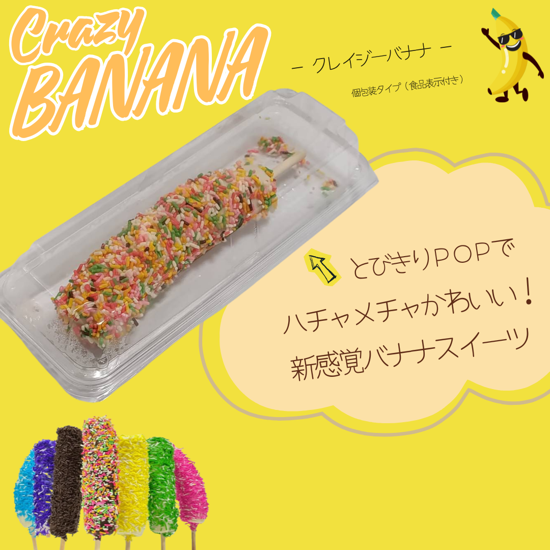 一口頬張ると、バナナの甘さとチョコレートのコクが絶妙に溶け合います。見た目だけでなく、味わいも新時代のクレイジーバナナです。この新しい味体験を是非お試しください。