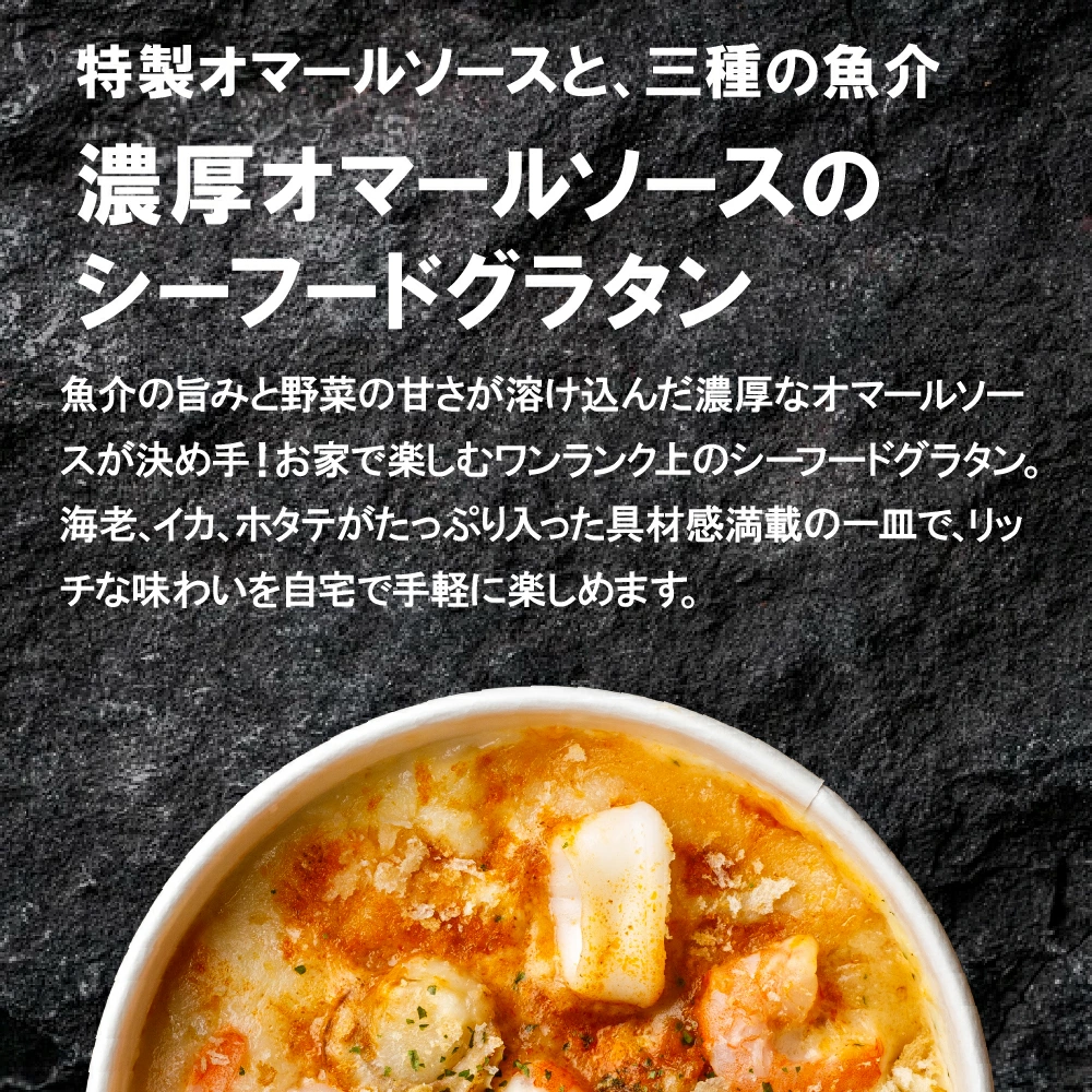 3種魚介を贅沢にトッピングし、特製オマールソースを加えた風味豊かなグラタンです!海の恵みがとろける贅沢…濃厚なオマール海老のソースが、ぷりぷりのシーフードと絡み合う極上グラタン。ひと口で広がる旨みと香り、心まで満たすご褒美グラタンです!