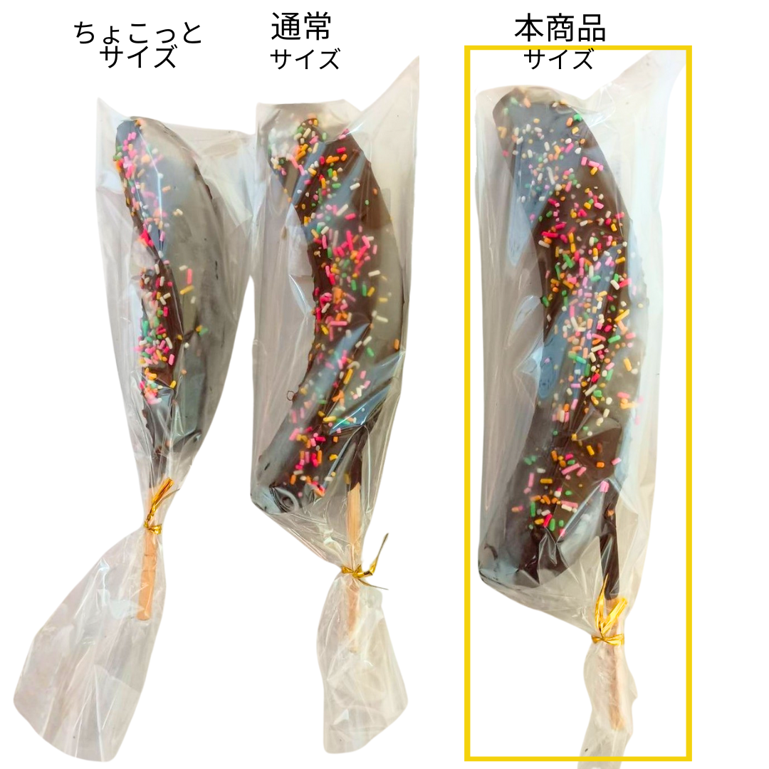 特大サイズ!お祭りの定番であるチョコバナナ!子供から大人まで大人気!チョコバナナは時間がたつと糖が膨張し始めて、、 亀裂が入ってるのが食べ頃です♪懐かしさも感じながらお召し上がり下さい♪