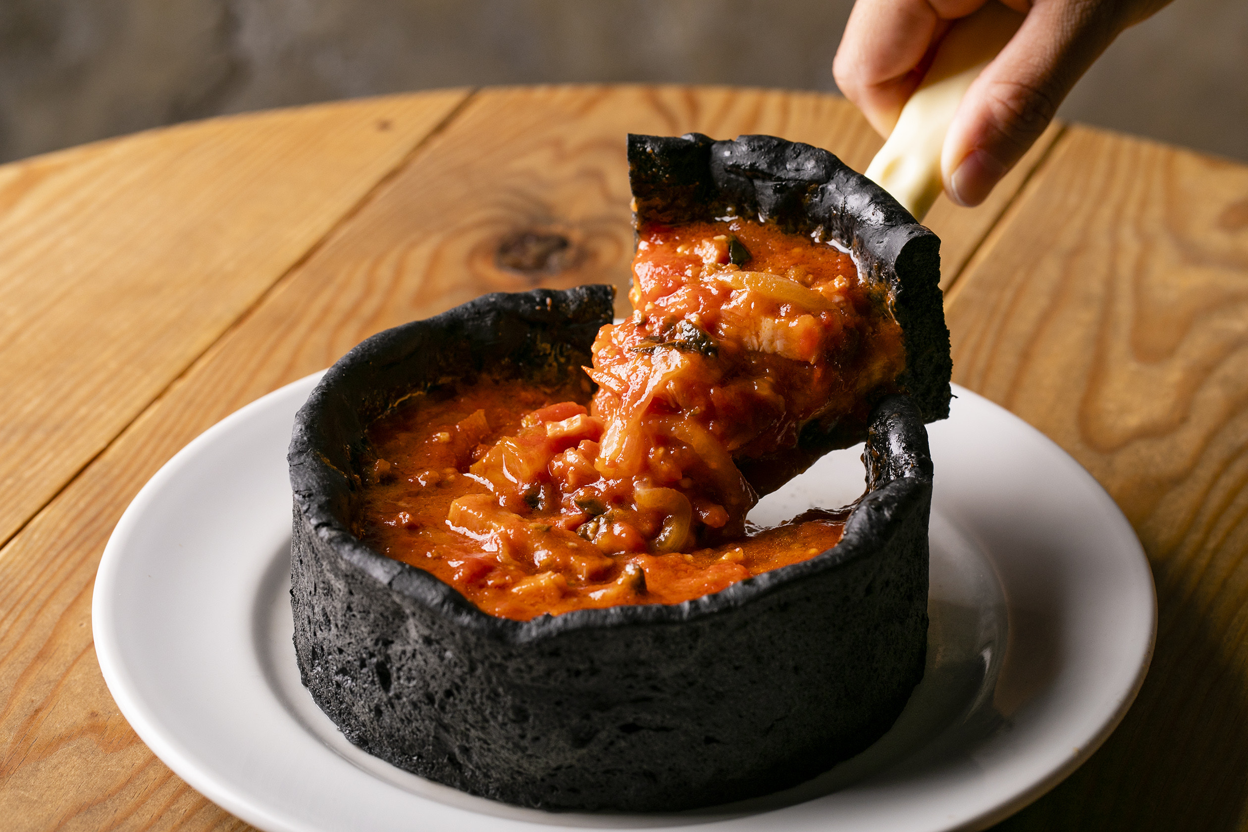 トマトソースが絶品!チーズ好きのための特製チーズと 自家製の挽肉のラグーの上に、チーズソースをたっぷりとかけた絶品シカゴピザです♪