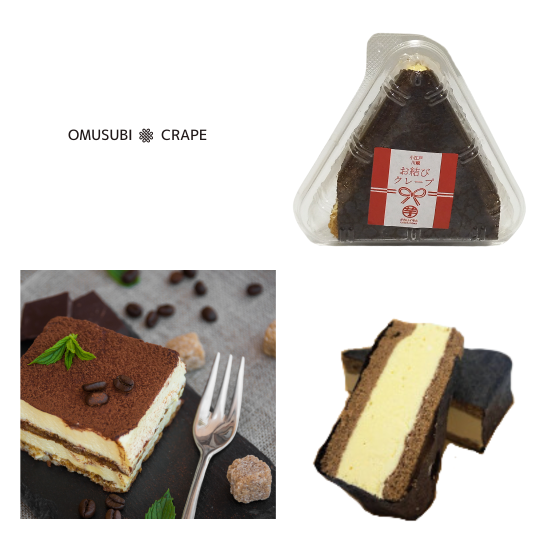 三角形のケーキをクレープで巻いた♪ご縁を結ぶ「OMUSUBI CPAPE」です♪濃厚で香り豊かなクリームチーズとスポンジケーキが絶妙なおいしさ!【ティラミス ケーキ】をワンハンドでお手軽にお楽しみいただけます♪
