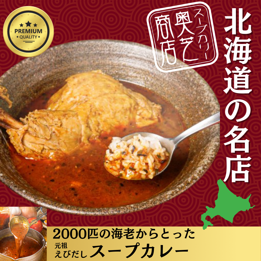| 店舗紹介: | スープカレーの本場である北海道札幌市で2006年に創業。毎朝2000匹以上の甘えびから出汁を取るえび出汁スープカレーの元祖。 出汁系スープカレーブームの火付け役となりました。「元祖えびだしスープカレー」が自慢のお店です。 |